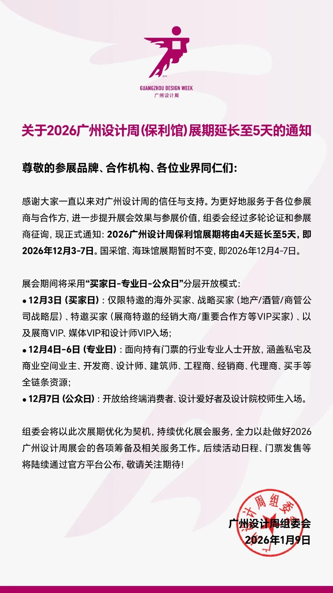 2026广州设计周定档于2026年12月3-7日,将在广州保利世贸博览馆+广州国际采购中心+海珠国际会展中心三馆盛大举行。